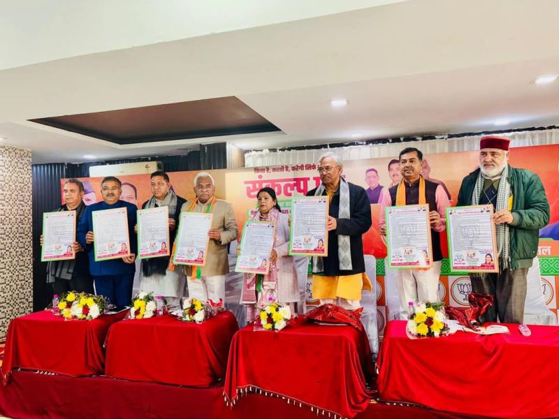 हरिद्वार, 18 जनवरी। हरिद्वार सांसद त्रिवेंद्र सिंह रावत, नगर विधायक मदन कौशिक, रानीपुर विधायक आदेश चौहान, जिलाअध्यक्ष संदीप गोयल, निगम चुनाव प्रभारी ज्योति प्रसाद गैरोला, मेयर प्रत्याशी किरण जैसल, पूर्व मेयर मनोज गर्ग एवं चुनाव संचालन समिति अध्यक्ष विमल कुमार ने हरिद्वार नगर निगम चुनाव के लिए भाजपा का संकल्प पत्र जारी किया।