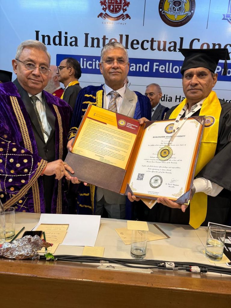 भारत विकास परिषद के क्षेत्रीय सचिव सेवा एन सी आर – 1, डॉ गुप्ता को हैवीटेट वर्ल्ड सेंटर नई दिल्ली में *बर्लिंगटन स्टेट यूनिवर्सिटी ऑफ अमेरिका* (यूएसए) द्वारा प्रदान की गई है।विश्व के अनेक देशों के प्रबुद्ध एवं ख्याति प्राप्त प्रतिनिधियों, उत्तराखंड उच्च न्यायालय के पूर्व न्यायाधीश लोकपाल सिंह, दिल्ली उच्च न्यायालय के पूर्व न्यायाधीश एमएल मेहता तथा छत्तीसगढ़ उच्च न्यायालय के पूर्व न्यायाधीश गौतम चौधरी, दो वाइस चांसलर,दिल्ली एंबेसी की हाई कमिश्नर ,परिवहन मंत्री साउथ अफ्रीका,इंग्लैंड,ऑस्ट्रेलिया,फिल्म उद्योग सहित अन्य प्रतिनिधियों के कुल पैनल में शामिल 22 सदस्यों ने अपने कर कमलों के द्बारा पीएचडी डिग्री(डॉक्टर ऑफ फिलॉस्पी),गोल्ड मेडल के साथ बिज़नस मैनेजमेंट एंड सोशल वर्क में प्रदान की गई।
