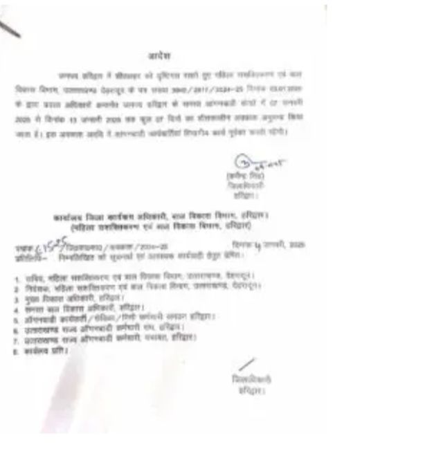 हरिद्वार। शीतकालीन अपने चरम पर है। अतः ठंड के मद्देनज़र जिला मजिस्ट्रेट एवं जिलाधिकारी कर्मेन्द्र सिंह ने जनपद हरिद्वार में महिला सशक्तिकरण एवं बाल विकास विभाग द्वारा प्रदत्त अधिकारों का उपयोग करते हुए जनपद हरिद्वार के समस्त आंगनबाडी केन्द्रों में 07 जनवरी 2025 से दिनांक 13 जनवरी 2025 तक कुल 07 दिनों का शीतकालीन अवकाश अनुमन्य किया है।