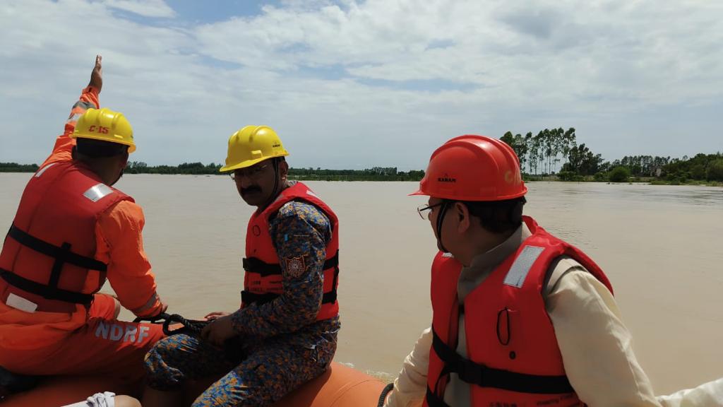 हरिद्वार। मुख्यमंत्री पुष्कर सिंह धामी ने बृहस्पतिवार को जनपद हरिद्वार की तहसील लक्सर के विभिन्न क्षेत्रों-लक्सर बजार मदारपुर, शाहपुर बस्ती, प्रहलादपुर, हस्तमौली में अतिवृष्टि एवं सोनाली नदी के कारण हुये जलभराव से प्रभावित क्षेत्रों का रेस्क्यू बोट एवं ट्रैक्टर में बैठकर स्थलीय निरीक्षण किया।