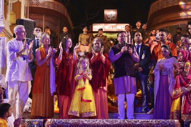 आज सांयकाल माँ गंगा के पावन तट पर 50 से अधिक देशों से आये योग जिज्ञासुओं, योगाचार्यों, योग एम्बेसडर की उपस्थिति में स्वामी चिदानन्द सरस्वती जी, माननीय मुख्यमंत्री उत्तराखंड, श्री पुष्कर सिंह धामी जी, साध्वी भगवती सरस्वती जी, कथाकार सुश्री जया किशोरी जी ने दीप प्रज्वलित कर अन्तर्राष्ट्रीय योग महोत्सव का विधिवत उद्घाटन किया।