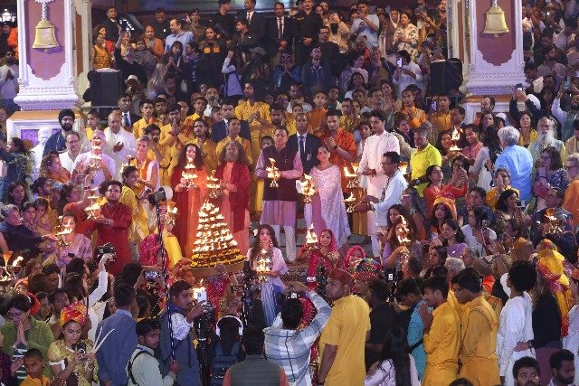 -माननीय मुख्यमंत्री, श्री पुष्कर सिंह धामी जी, परमार्थ निकेतन के अध्यक्ष स्वामी चिदानन्द सरस्वती जी, डा साध्वी भगवती सरस्वती जी, कथाकार सुश्री जया किशोरी जी, 50 से भी अधिक देशों से आये योगाचार्यों, योग जिज्ञासुओं और योग एम्बेसडर ने दीप प्रज्वलित कर योग महोत्सव का किया विधिवत उद्घाटन