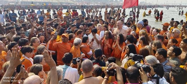 -पूज्य संत स्वामी चिदानन्द सरस्वती जी, पूज्य बागेश्वर धाम सरकार, धीरेन्द्र कृष्ण शास्त्री जी और साध्वी भगवती सरस्वती जी ने संगम में किया स्नान