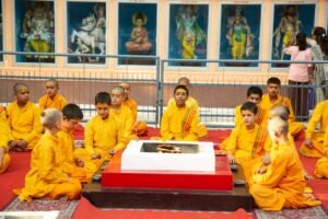 परमार्थ गुरुकुल के आचार्यों और ऋषिकुमारों ने विश्व शान्ति यज्ञ में विशेष आहुतियाँ समर्पित कर श्री मंगल पांडे जी को भावभीनी श्रद्धाजंलि अर्पित की।