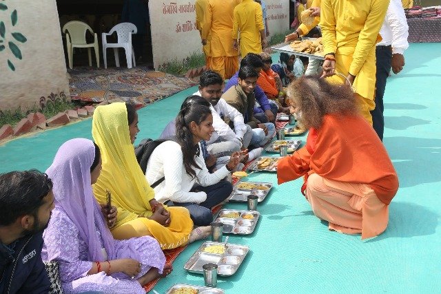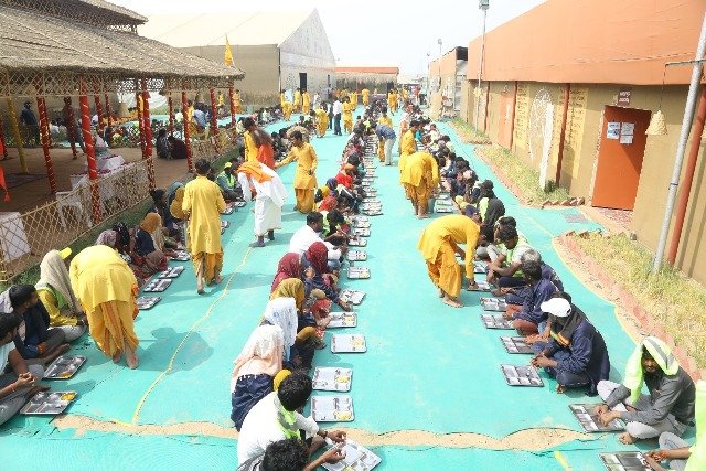 -अरैल घाट के स्वच्छता कर्मी भाई-बहनों को कराया भोजन