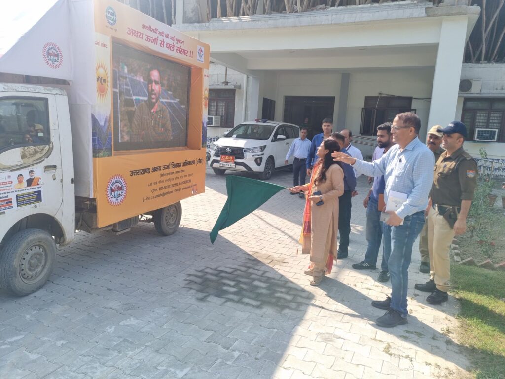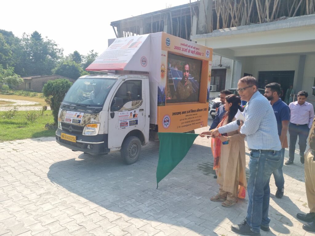 मुख्य विकास अधिकारी आकांक्षा कोंडे द्वारा अक्षय ऊर्जा, पी०एम० सूर्य घरः बिजली मुफ्त योजना के प्रचार प्रसार हेतु उरेडा के प्रचार वाहन को विकास भवन रोशनाबाद से हरी झंडी दिखाकर रवाना किया गया। प्रचार प्रसार वाहन से जनपद में आम जनता को सौर ऊर्जा की योजनाओं के बारे में जानकारी मिलेगी, जिससे कि वह अपने घरों पर सौर ऊर्जा प्लांट लगाने हेतु प्रेरित होंगे।