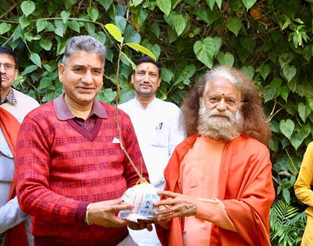 स्वामी जी ने उत्तराखंड शासन के कार्यक्रम क्रियान्वयन एवं संस्कृत शिक्षा विभाग के सचिव, श्री दीपक कुमार गैरोला जी को हिमालय की हरित भेंट रूद्राक्ष का पौधा भेंट कर उनका अभिनन्दन किया।