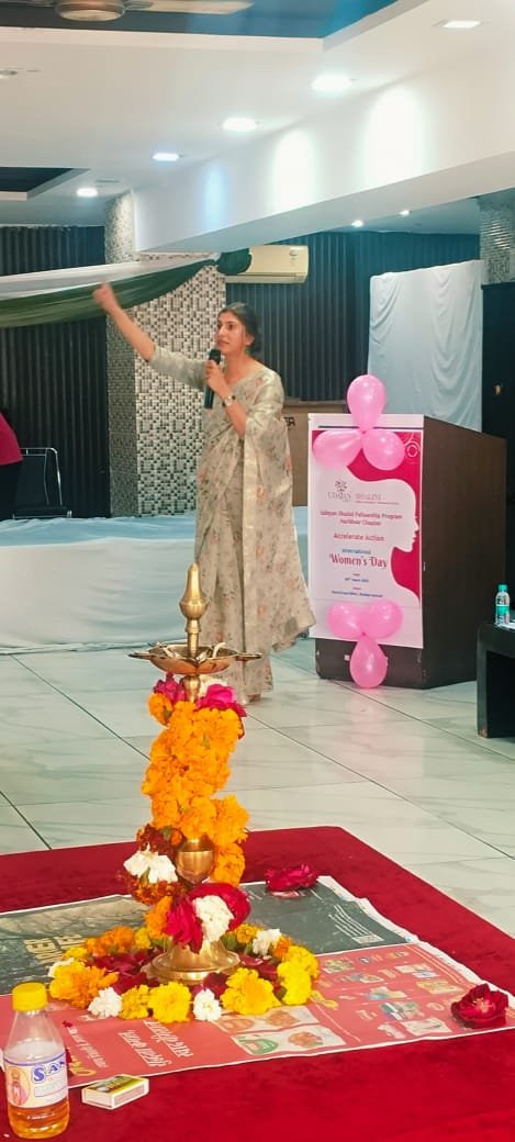 हरिद्वार। उदयन शालिनी फेलोशिप की ओर से स्थानीय होटल ग्रैंड शिवा में अंतराष्ट्रीय महिला दिवस धूमधाम से मनाया गया। “कार्यवाही में तेजी लाना” विषय पर आयोजित कार्यक्रम में शालिनीयो के द्वारा अलग अलग गतिविधियां हुई। कार्यक्रम में कुछ नया दर्शाते हुए, इस बार महिलाओं के अलग अलग रूप फैशन शो के द्वारा प्रस्तुत किए गए, जिसमें अलग-अलग क्षेत्र शिक्षिका ,जर्नलिस्ट ,जज डॉक्टर ,ग्रहणी ,इंजीनियर एवं समाज सेविका , सी. ए. आदि महिलाओं की भागीदारी जिम्मेदारी और आत्मनिर्भरता को दर्शाते हुए यह संदेश दिया कि “महिलाएं किसी भी क्षेत्र में पुरुषों से कम नहीं है।”