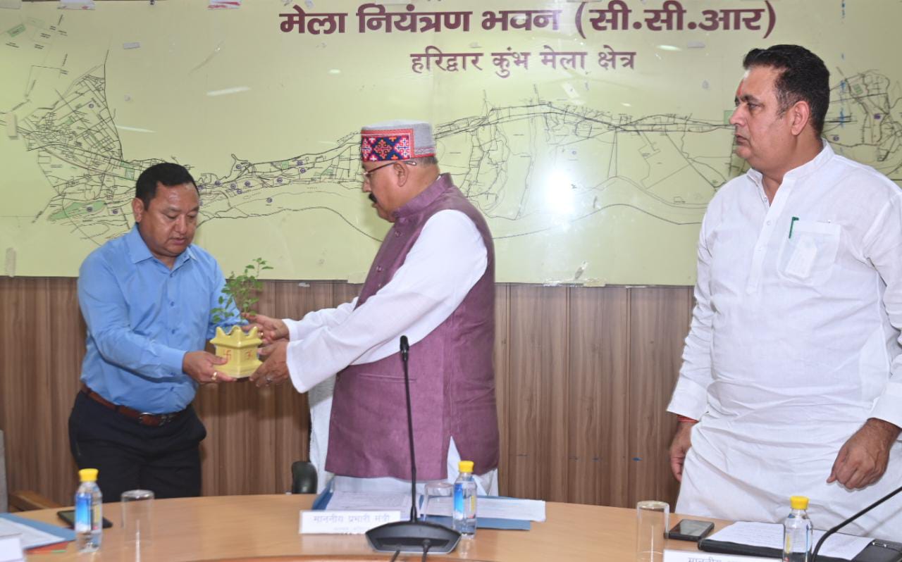 मेला नियंत्रण भवन परिसर पहुंचने पर मा0 कैबिनेट मंत्री श्री सतपाल महाराज को जिलाधिकारी श्री धीराज सिंह गब्र्याल ने स्वागत व अभिनन्दन स्वरूप तुलसी का पौधा भेंट किया।